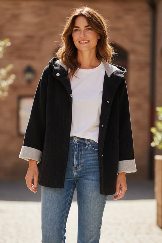 • Cierre con corchetes y bolsillos laterales