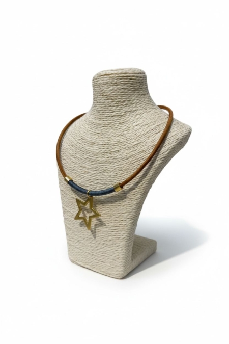 Collar corto en cordón cuero y detalle de estrella. Acabado superior con cierre ajustable.