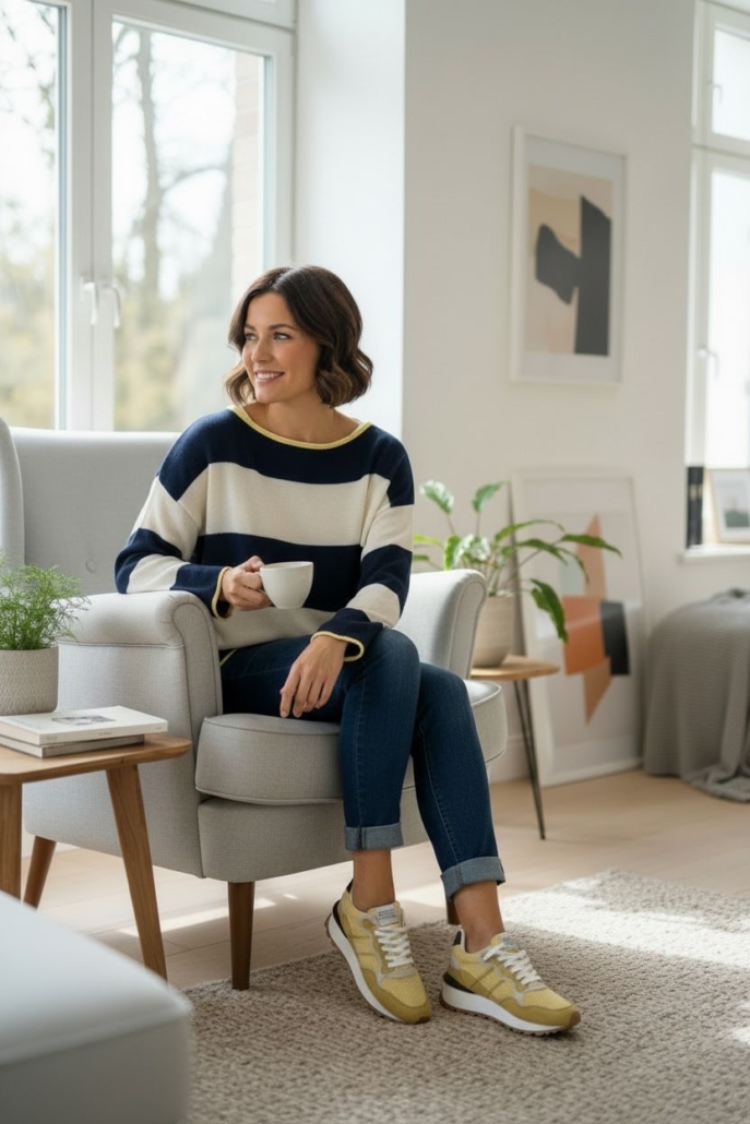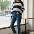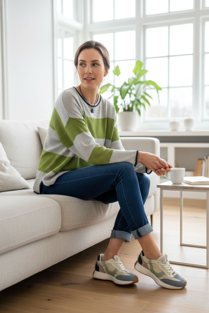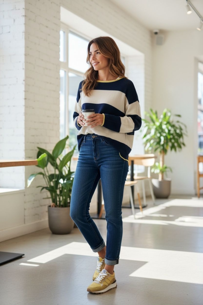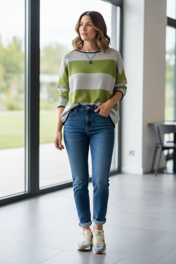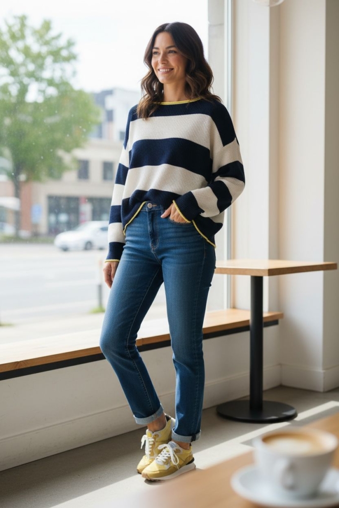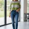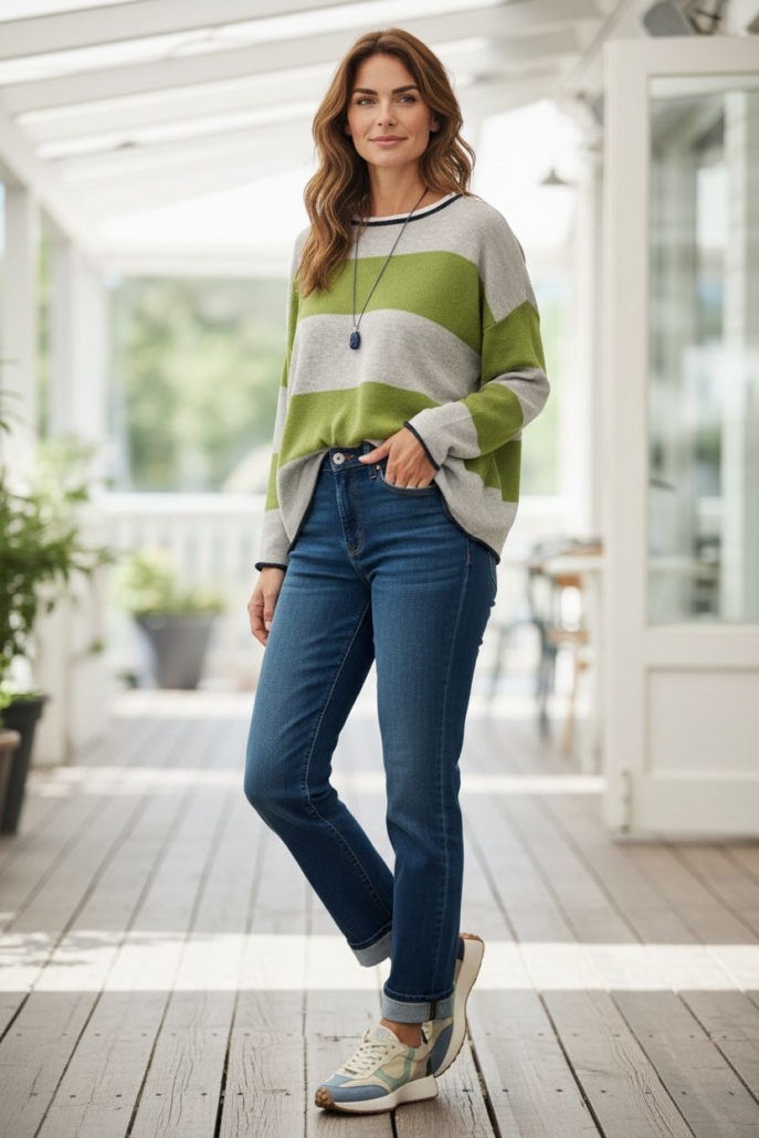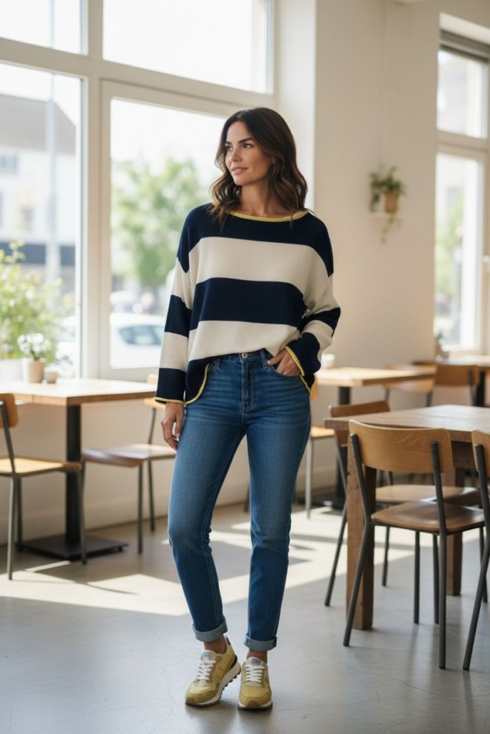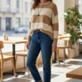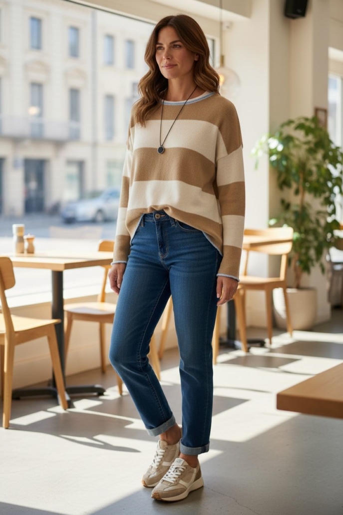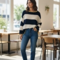 • Cuello semi barca y hombro caído.